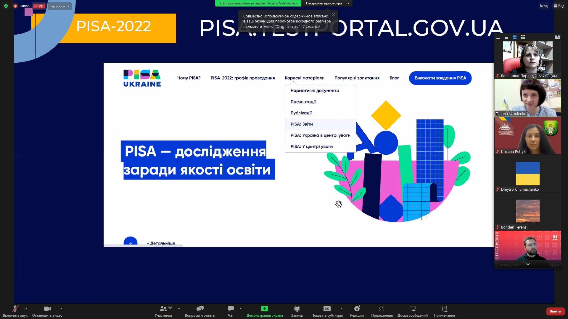 20 грудня відбулася онлайн-зустріч з Тетяною ВАКУЛЕНКО – керівницею Українського центру оцінювання якості освіти, національною координаторкою міжнародного дослідження якості освіти PISA.