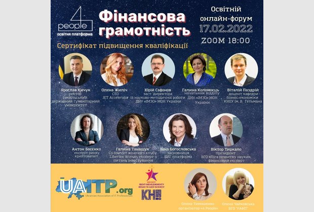 17 лютого 2022 р. відбувся Всеукраїнський форум «ФІНАНСОВА ГРАМОТНІСТЬ». В заході прийняли участь викладачі кафедри економіки, управління та туризму Хмельницького інституту МАУП Ганна Цимбалюк та Галина Оліх.