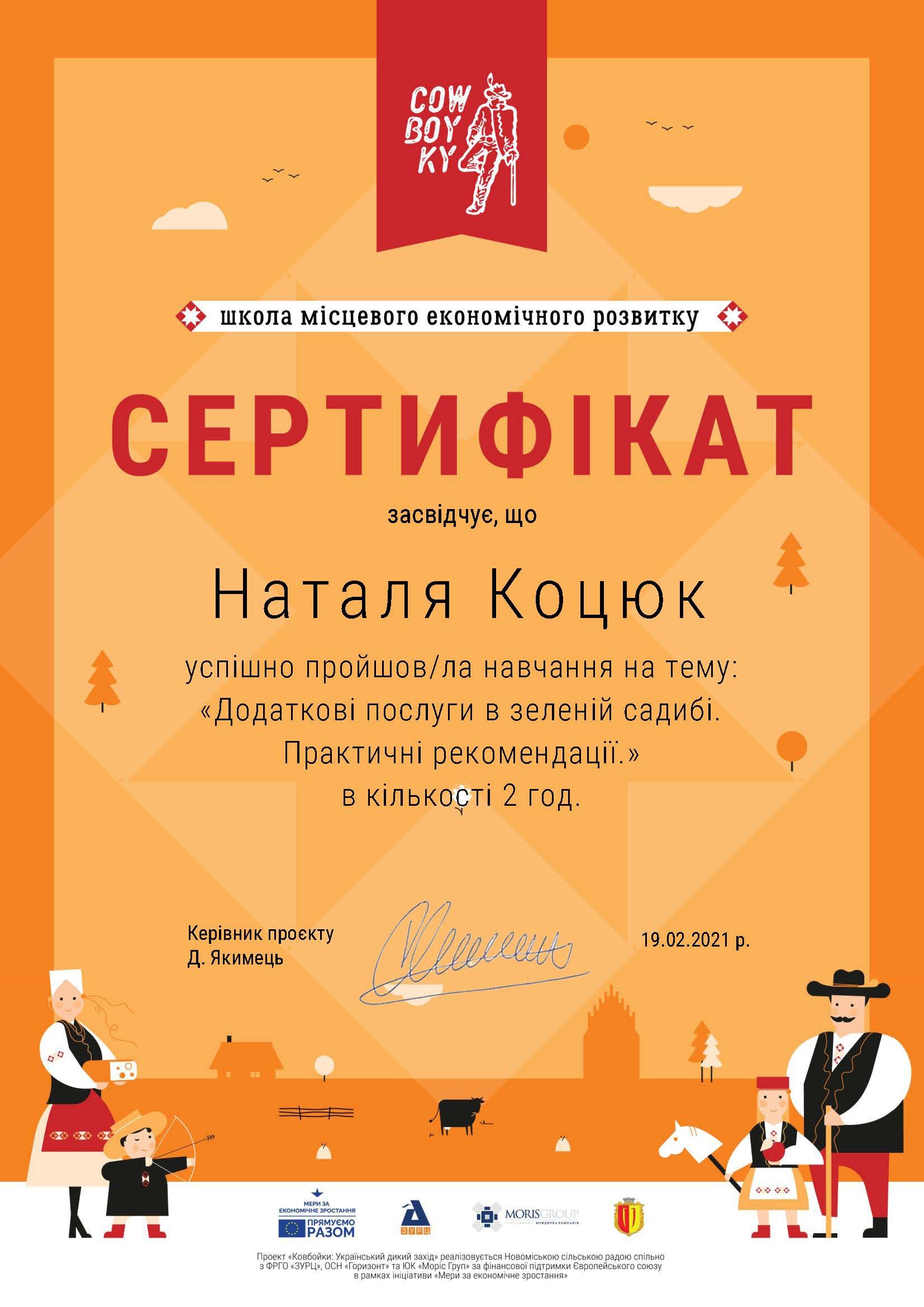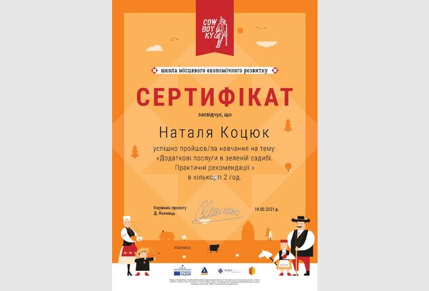 Викладачі кафедри економіки, управління та туризму Коцюк Володимир Дмитрович та Коцюк Наталія Володимирівна 17 лютого 2021 року взяли участь в онлайн-семінарі «Додаткові послуги в зеленій садибі. Практичні рекомендації».