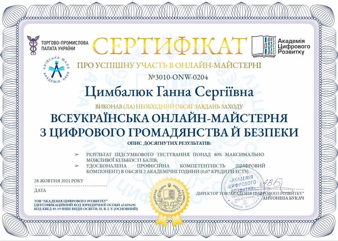 Викладачі кафедри економіки, управління та туризму Хмельницького інституту МАУП взяли участь у «Всеукраїнській онлайн-майстерні з цифрового громадянства й безпеки»