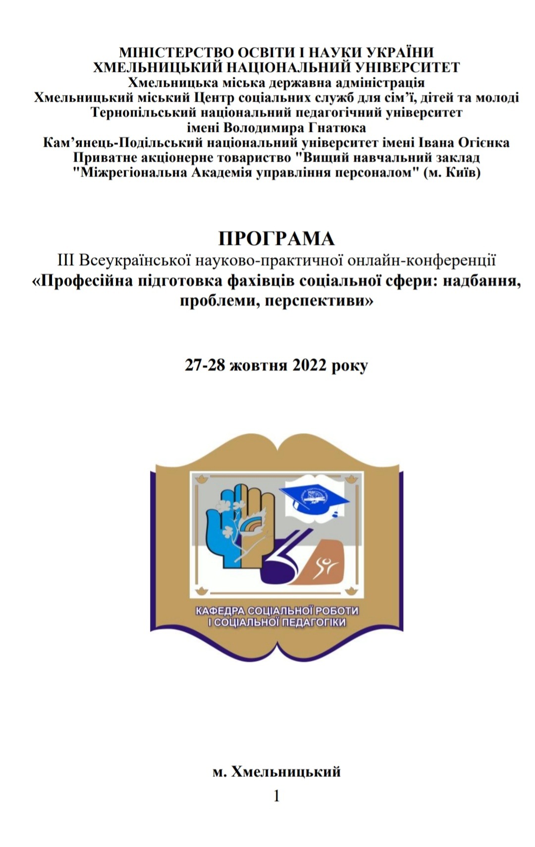 27-28 жовтня 2022 року викладачі кафедри психології Навчально-наукового інституту психології та соціальних наук в якості співорганізаторів та магістри спеціальності 053 Психологія прийняли участь у ІІІ Всеукраїнській науково-практичній онлайн-конференції "Професійна підготовка фахівців соціальної сфери: надбання, проблеми, перспективи".