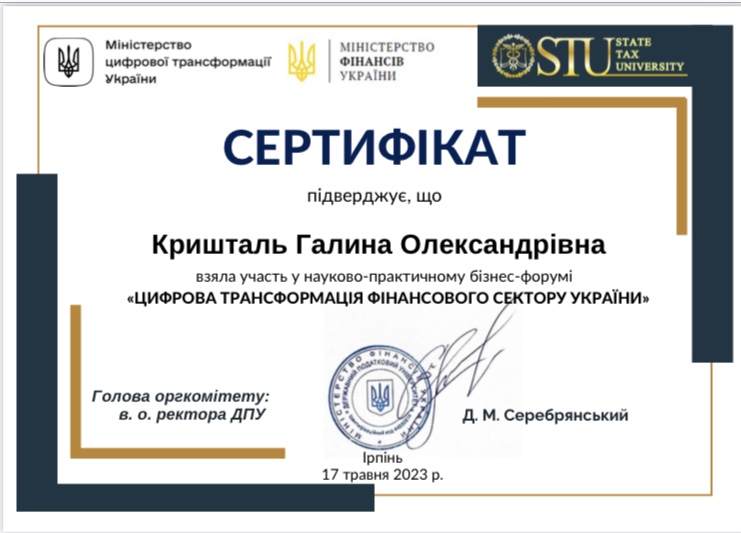 17 травня 2023р. в Державному податковому університеті (місто Ірпінь) відбувся науково-практичний бізнес-форум "Цифрова трансформація фінансового сектору України" до якого мали честь долучитися і викладачі Міжрегіональної Академії управління персоналом.