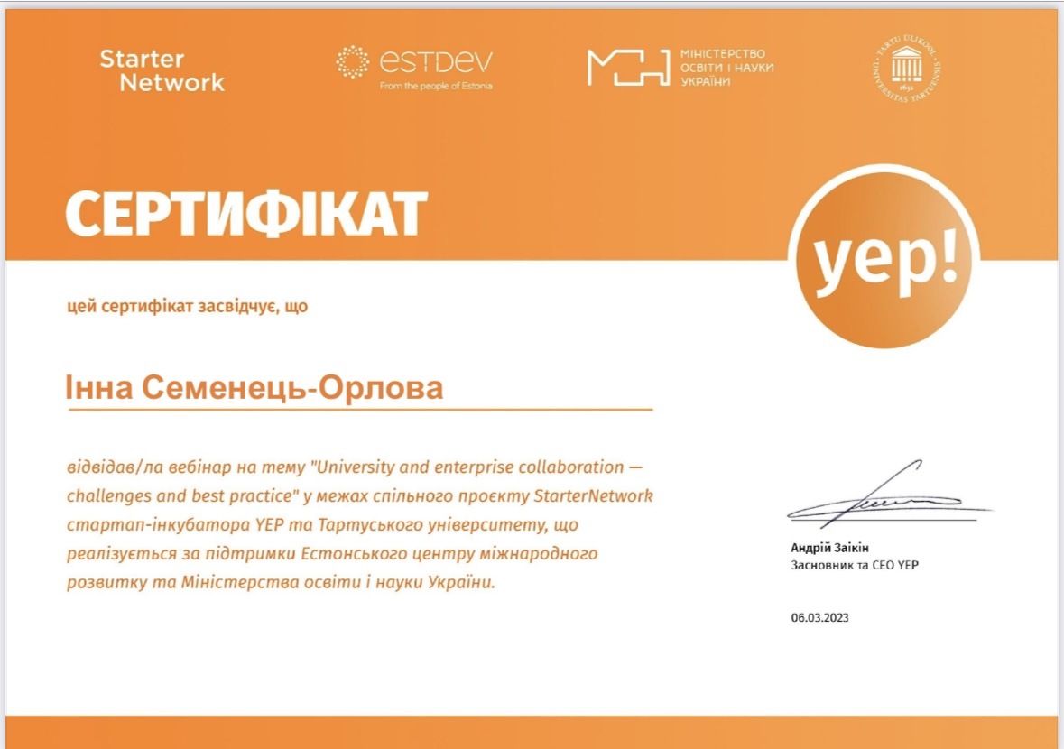 Науково-педагогічні працівники Навчально-наукового інституту управління, економіки та бізнесу долучилися до спільної програми YEP та Тартуського університету StarterNetwork.