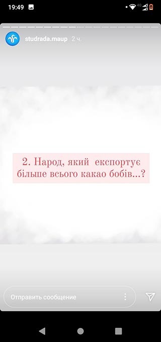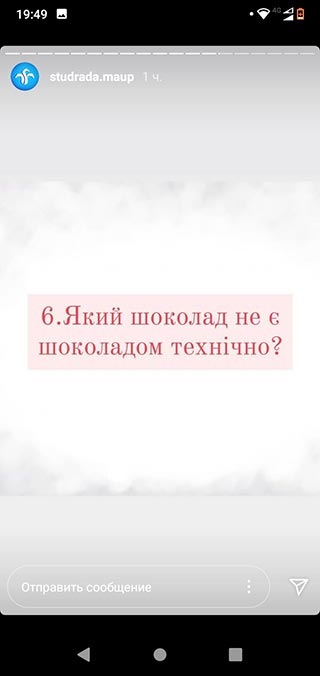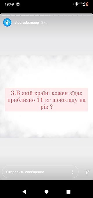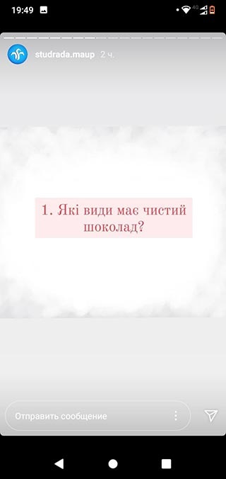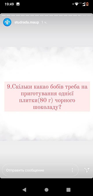 У вікторині взяли участь студенти Президентського університету та регіональних підрозділів Академії. Протягом дня учасники на офіційні сторінці Студентської ради в Instagram відповідали на запитання про кондитерські вироби, виготовлені з використанням плодів какао.