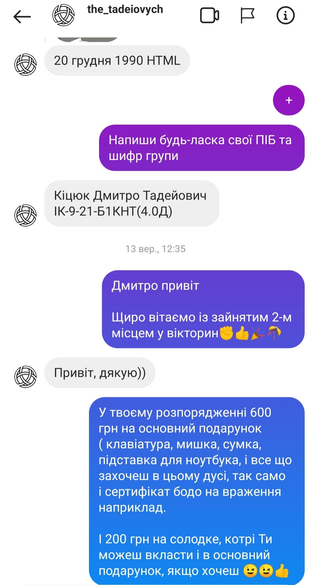 Вікторина проводилась на розвиток та перевірку знань студентів у вищезгаданих сферах програмування.