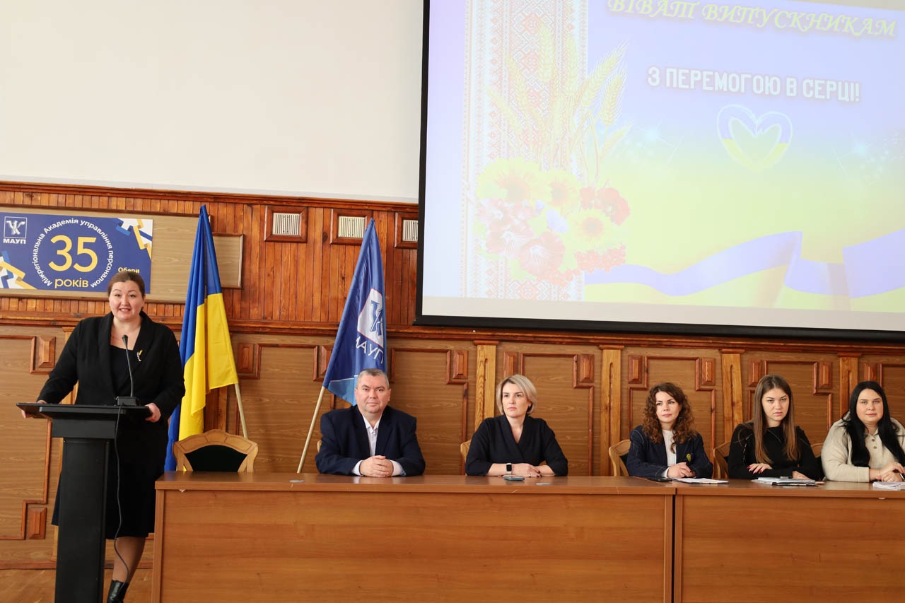 У завершальному слові ведуча побажала випускникам залишатися впевненими, вірити у власні сили та ніколи не зупинятися на досягнутому – «Цей диплом – не лише підтвердження ваших знань, а й символ вашої праці, віри у власні сили та прагнення досягати більшого. Ми пишаємося вами та впевнені, що ви будете гідно представляти нашу Академію!"