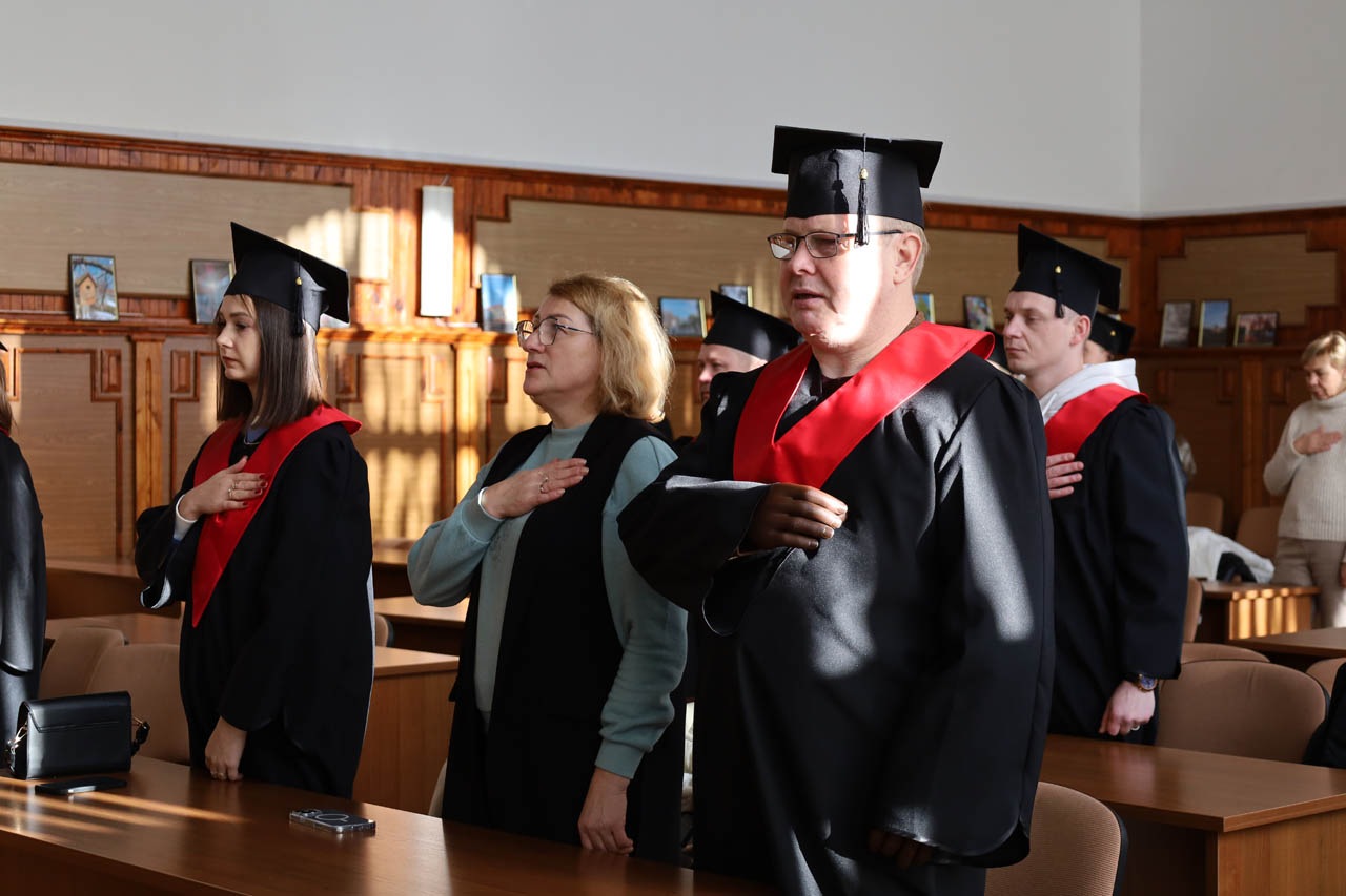 Урочистості продовжилися привітаннями від представників навчально-наукових інститутів Академії. Зокрема, виступила Інна Андріївна Семенець-Орлова, яка підкреслила важливість єдності академічної спільноти та висловила віру в успішне майбутнє випускників. Особливо зворушливим став її заклик любити Україну та зберігати вірність національним цінностям. Вона завершила свій виступ словами з Молитви українського націоналіста. Ці слова нагадали усім присутнім про вагу відповідальності перед майбутнім України та закликали випускників бути гідними своє держави.