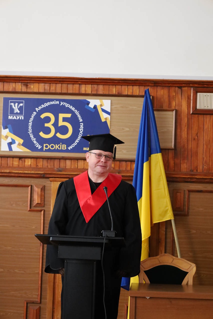 Ректор Академії, доктор юридичних наук, професор Кирило Володимирович Муравйов привітав випускників теплими словами, наголосивши на важливості здобутих знань і ролі молодих фахівців у розбудові України. Він висловив вдячність викладачам за їхню відданість, а також закликав випускників завжди пам’ятати свою Альма-матер та з впевненістю крокувати у майбутнє, реалізуючи свої амбіції і мрії.