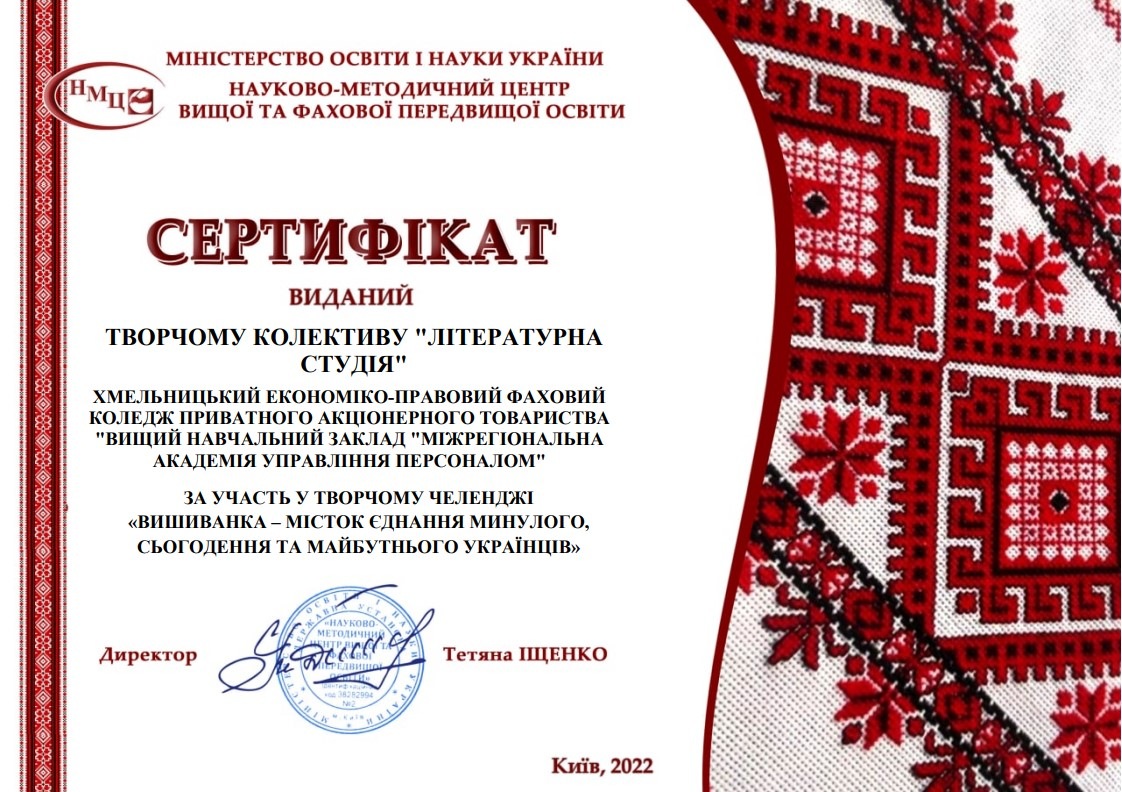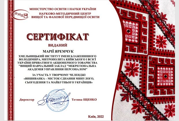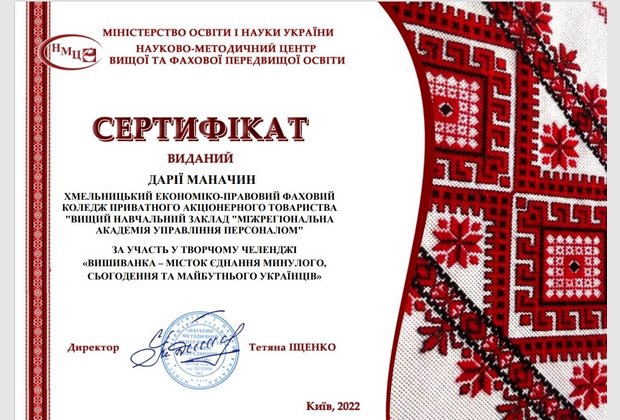 Участь студентів Хмельницького коледжу та інституту МАУП у творчому челенджі МОН України «Вишиванка – місток єднання минулого, сьогодення та майбутнього українців»