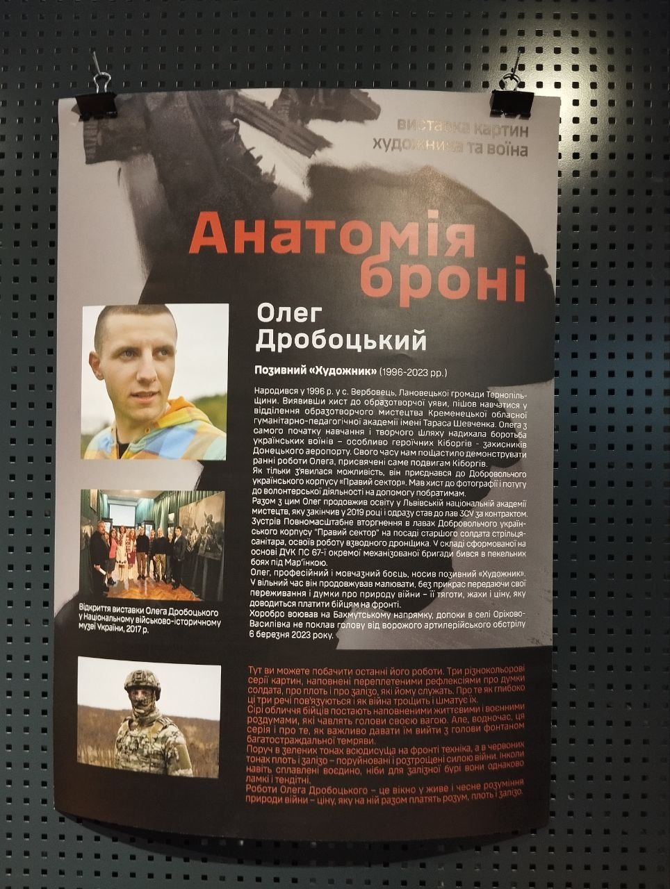 Cтуденти Хмельницького інституту МАУП відвідали виставку українського художника, учасника російсько-української війни Олега Дробоцького «АНАТОМІЯ БРОНІ».