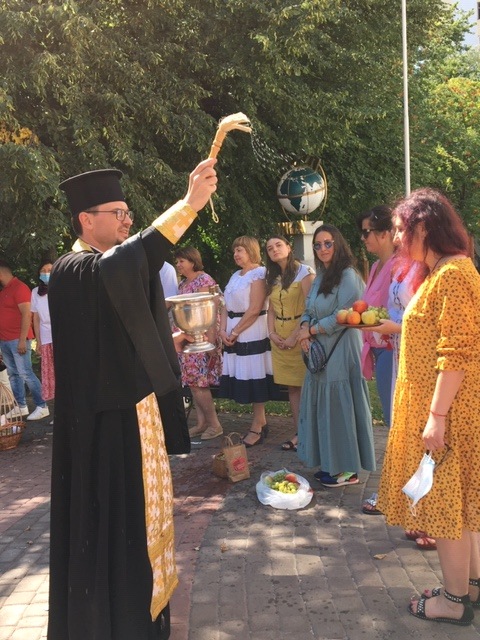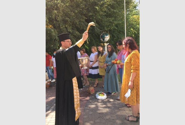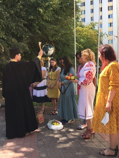 Сьогодні 19 серпня в стінах Міжрегіональній Академії управління персоналом відбулася святкове богослужіння до свята Преображення Господнього (Яблучний спас) та посвята кошиків з літнім урожаєм: яблука, груші, виноград.
