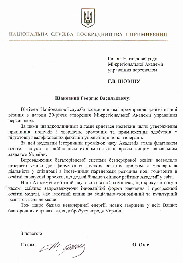 Вітання від Ноціональної служби посередництва та примирення