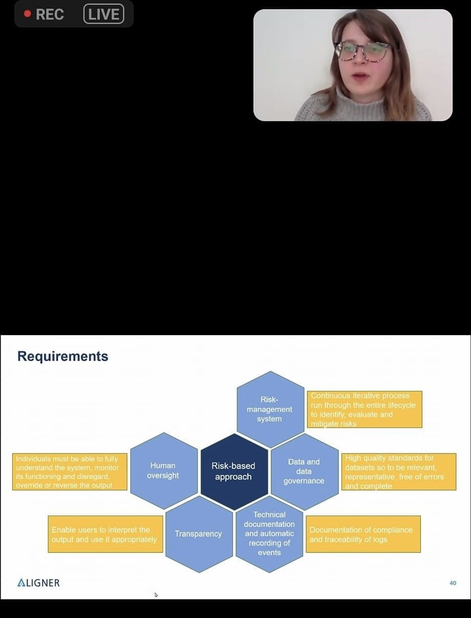 Кафедра менеджменту Навчально-наукового інституту управління, економіки та бізнесу взяла участь у вебінарі «Європейський закон про штучний інтелект: регулювання використання ШІ в правоохоронних цілях». Дізналися про Алана Тюрінга та його тест, який описаний в книзі Computer Machinery and Intelligence. А також про дистанціцну біометричну ідентифікацію, про нормативно-правові акти, які регламентують та захищають персональні дані та ризикові підходи до систем і можуть спричинити витік даних.