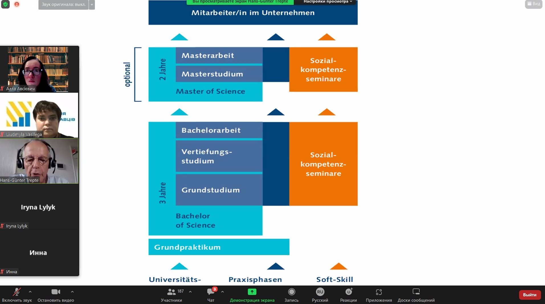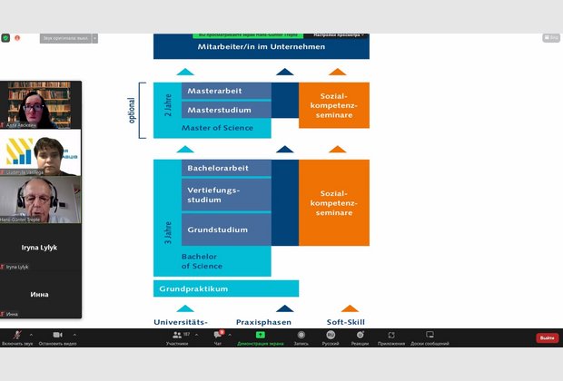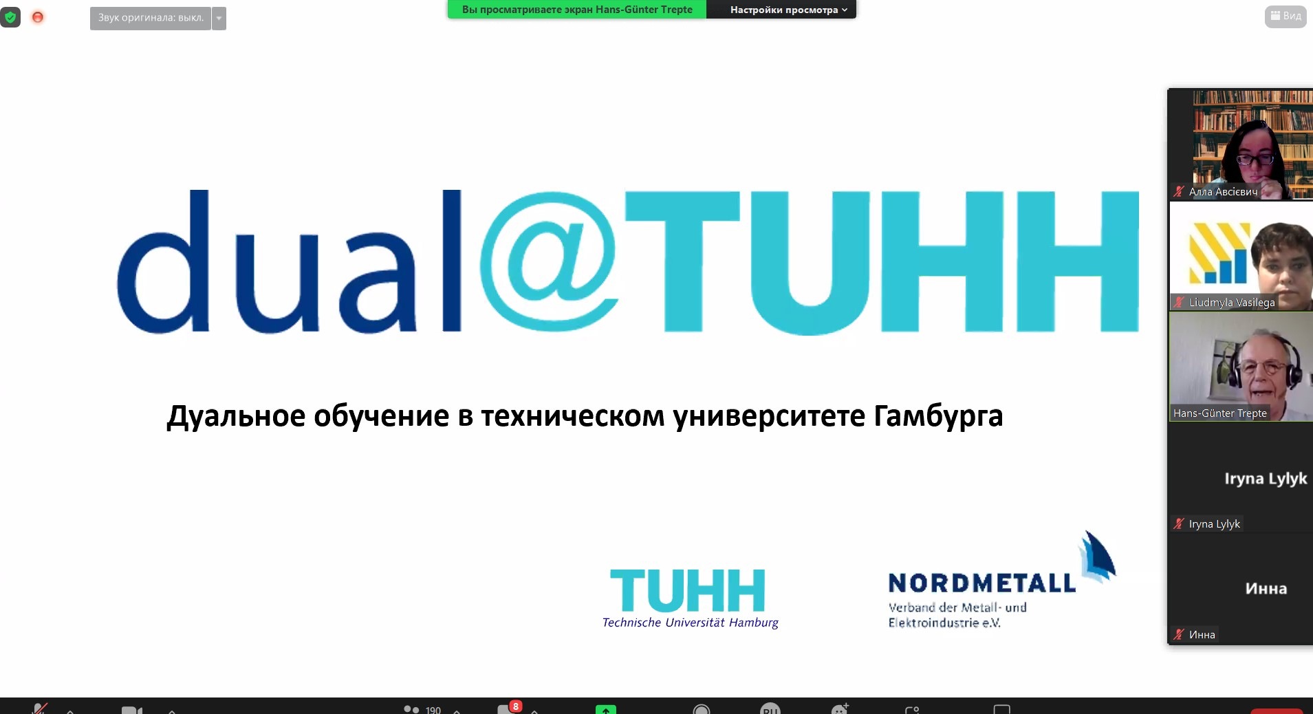 - дуальна форма навчання у закладах вищої освіти (форми організації, взаємодія з бізнесом тощо). За приклад було наведено досвід НордАкадемії (Вища школа економіки) – некомерційної освітньої організації. Також було проаналізовано досвід Технічного університету Гамбурга в частині підготовки фахівців з економічної інформатики.