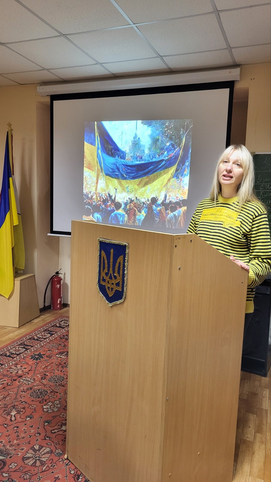 На заході вкотре нагадали здобувачам освіти найважливіші воєнні події за ці 10 років. Наголосили, що в єдності ми непереможні й найкращим і єдиним правильним рецептом здобуття перемоги у цій війні для кожного українця – це допомагати, щоб перемогти.