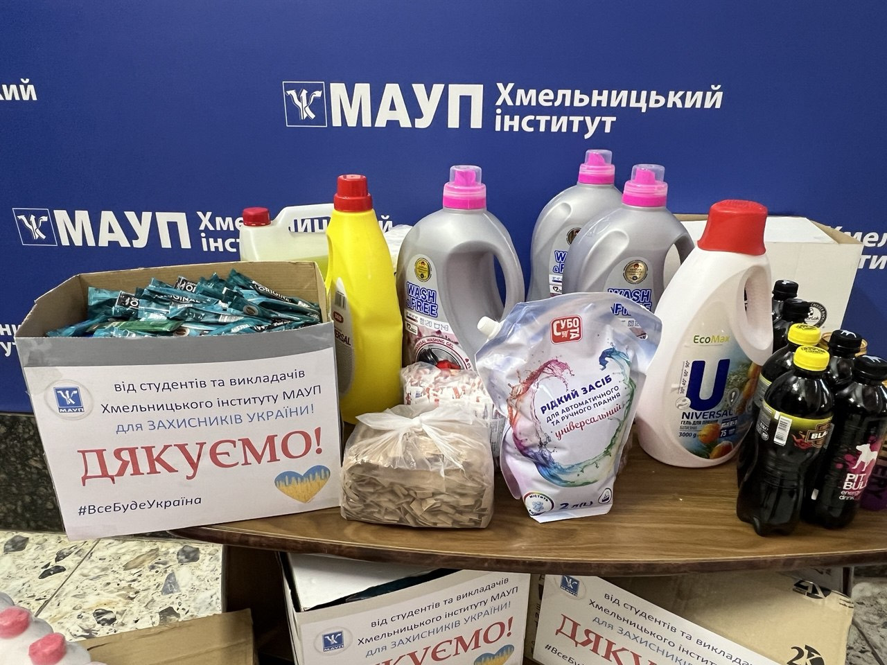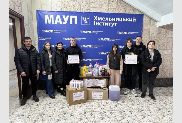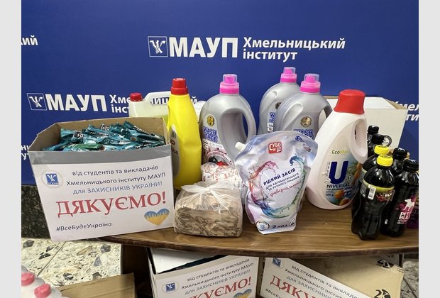 З початку повномасштабного вторгнення Волонтерський центр Хмельницького інституту МАУП збирає для сил оборони України необхідні речі, медикаменти, засоби гігієни, продукти харчування та ін.