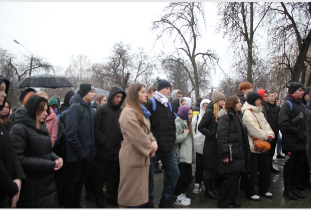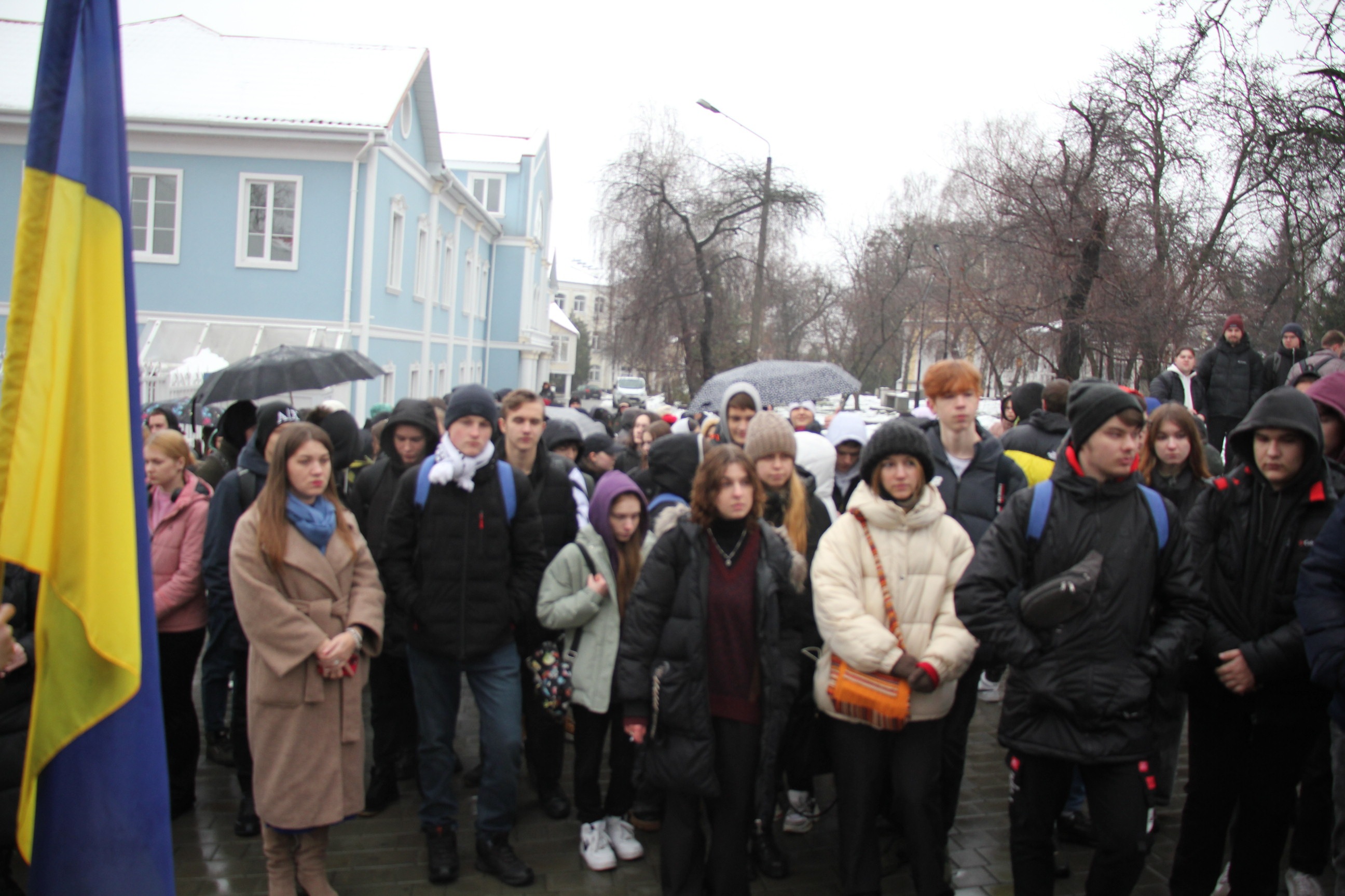 Студенти Президентського університету та Голосіївського фахового економіко-правового коледжу вшанували пам’ять жерт Голодомору біля меморіалу хвилиною мовчання.