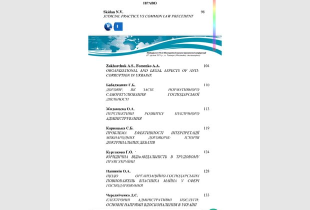 У матеріалах конференції висвітлені проблемні аспекти комунікативної взаємодії громадського суспільства та публічної влади, перспективні напрями формування та розвитку міжнародного та гуманітарного права, досліджено ефективність проведення семінарського заняття, що залежить від методичної тактики дій викладача.