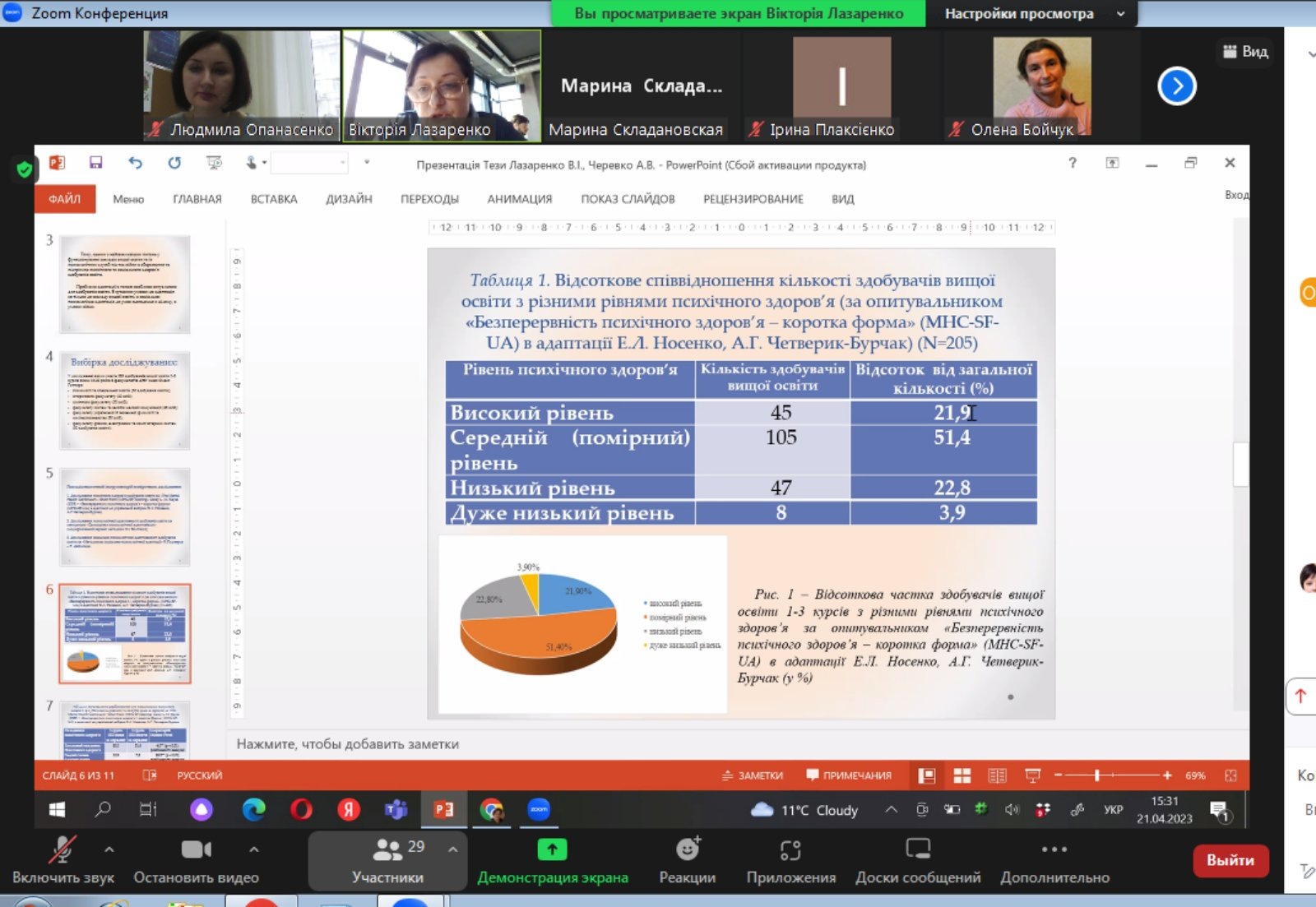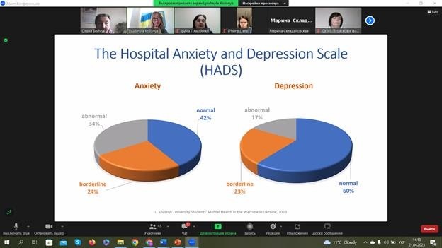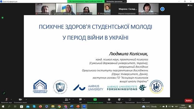 В своїй доповіді наша колега поділилася досвідом роботи психологів та викладачів кафедр Одеського інституту МАУП, психологічної служби та СНК "Психолог" за 2022-2023 рік". Особливо цікавим для колег психологів та учасників круглого столу став Всеукраїнський проєкт тренінгу "Психологія в мистецтві та мистецтво в психології", з яким запрошено Аллу Нерубасську виступити додатково для членів Асоціації психологів вищої школи України.