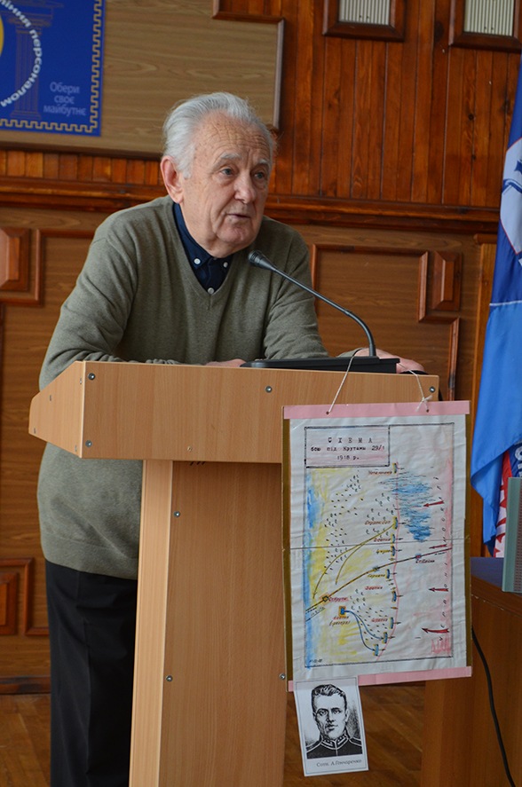 Розповідаючи про вікопомні історичні події, Михайло Пантелеймонович цитував власні вірші, присвячені і героям Крут, і мужнім воїнам, які зараз боронять територіальну цілісність України.