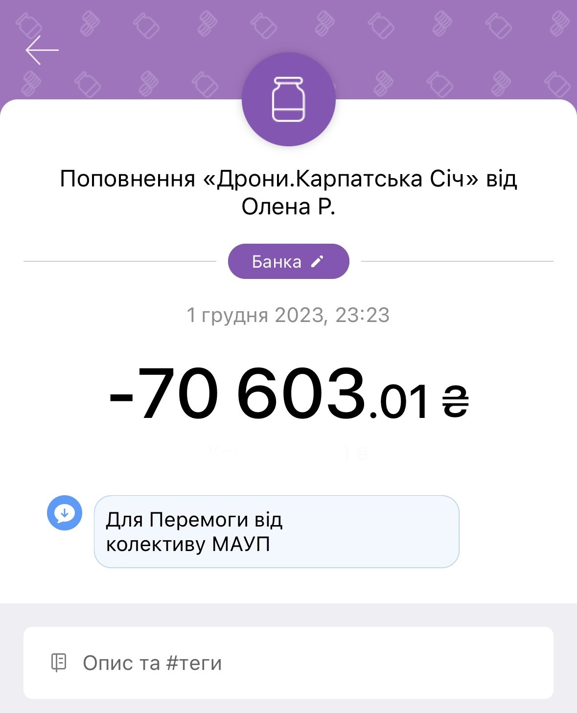 Наприкінці листопада 2023 р. колектив Навчально-наукового інституту управління, економіки та бізнесу МАУП зініціював та прийняв активну участь у зборі коштів для закупівлі дронів для 49-го окремого стрілецького батальйону Карпатська Січ імені Олега Куцина.