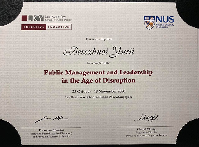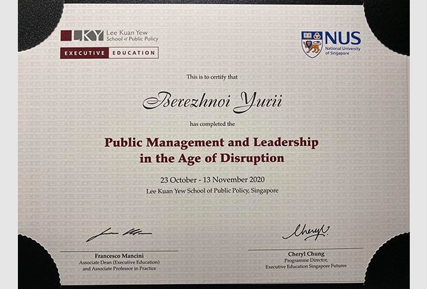 Закінчення навчання за програмою "Державне управління та лідерство в епоху інновацій" за програмою Школи державної політики імені Лі Куан Ю