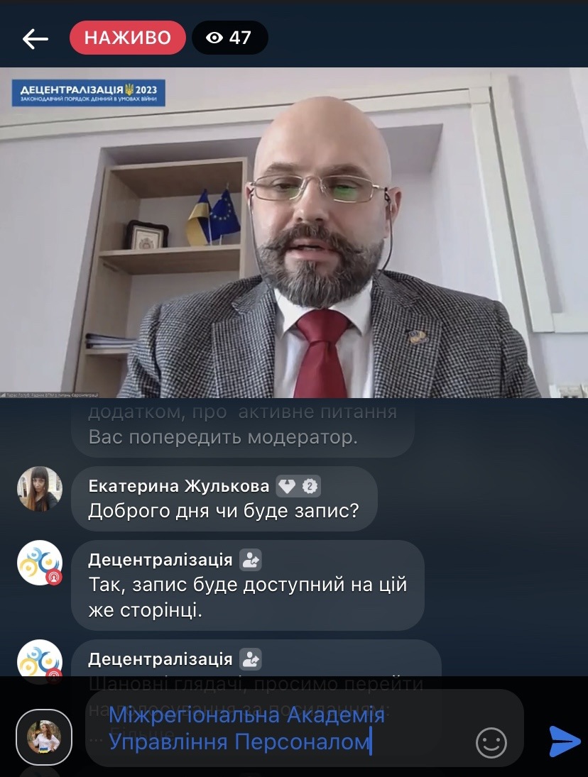 Капеліста І.М. та Щур Н.О. долучилися до участі у форумі «Децентралізація 2023. Законодавчий порядок денний в умовах війни», який організували Міністерство розвитку громад, територій та інфраструктури України, ГО «ДЕСПРО» за підтримки Проєкту USAID «ГОВЕРЛА», «Децентралізація».