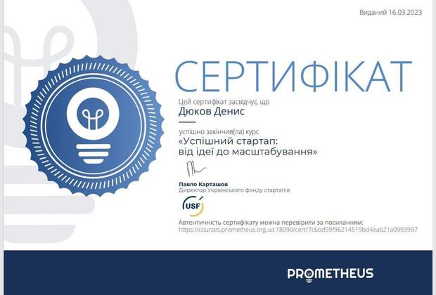 студенти 4 курсу спеціалізації «Менеджмент організації» разом з Середюк К.В. пройшли курс «Успішний стартап: від ідеї до масштабування» створений командою експертів Українського фонду стартапів на чолі з міністром цифрової трансформації України Михайлом Федоровим та отримали сертифікати;