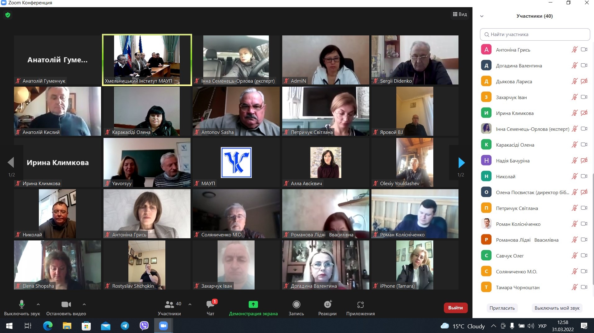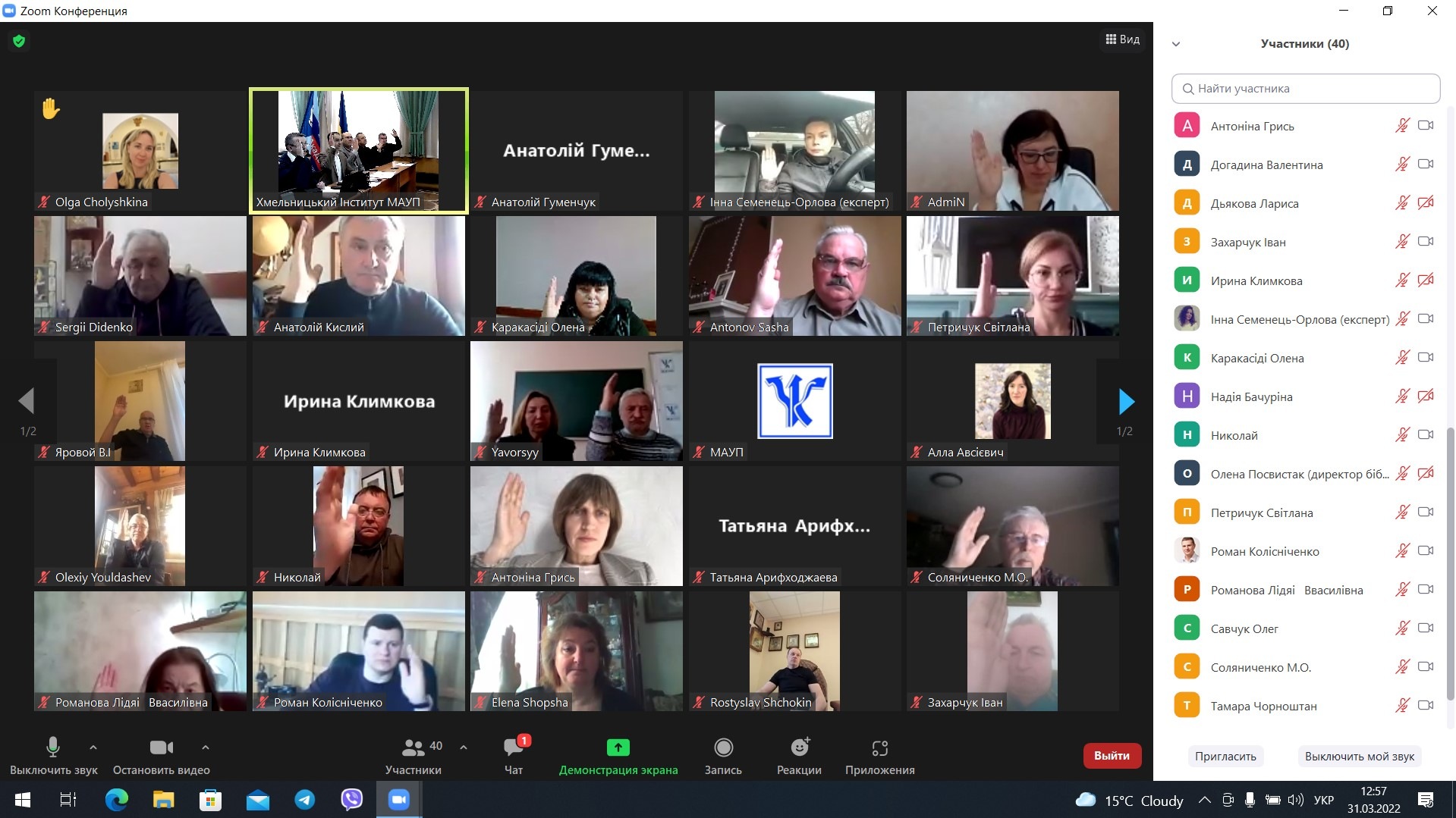 Засідання Вченої ради Міжрегіональної Академії управління персоналом 31 березня 2022 р.