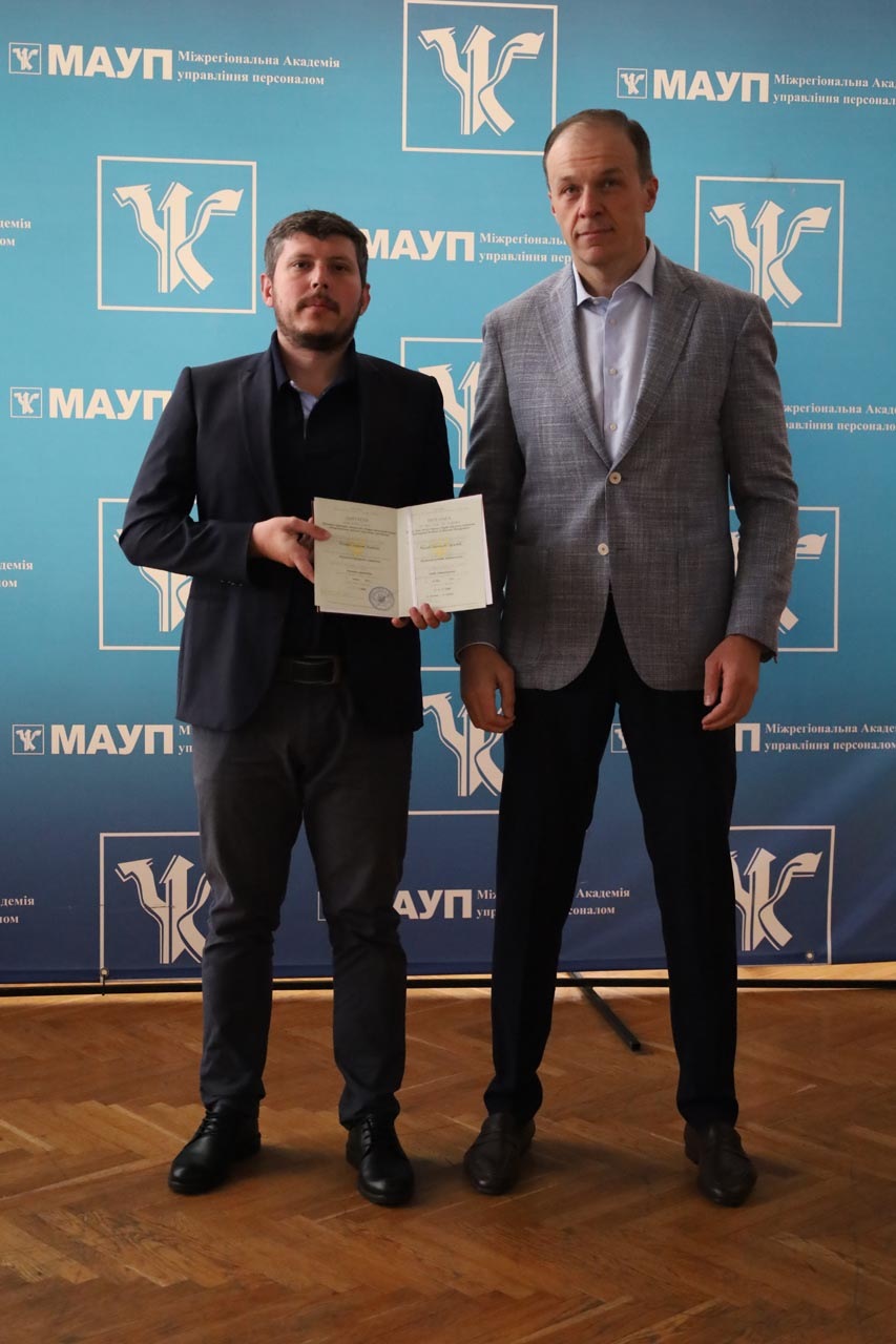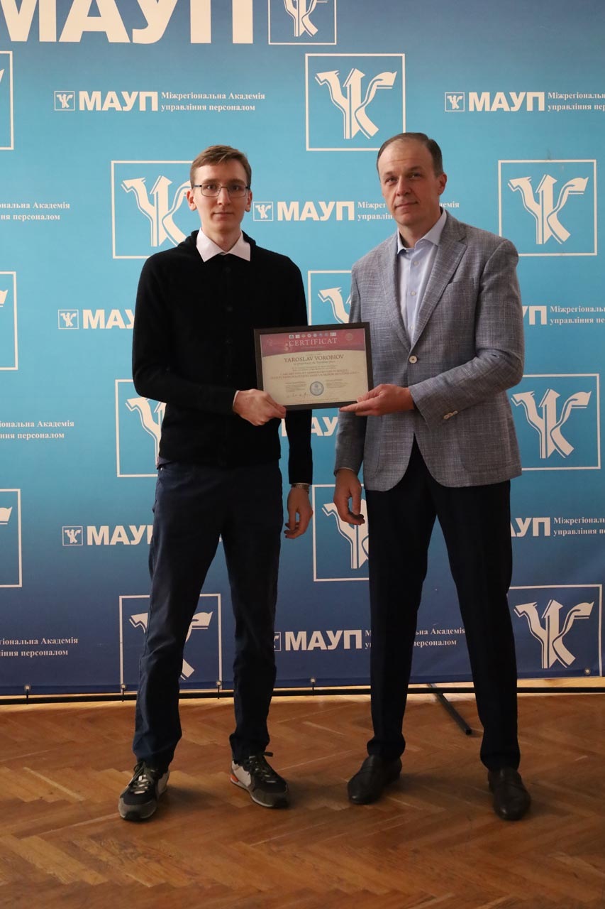 диплом за зайняте ІІІ місце у Міжнародному конкурсі наукових робіт молодих вчених “Архетипіка і публічне управління” було вручено студенту 4 курсу спеціальності “Публічне управління”: