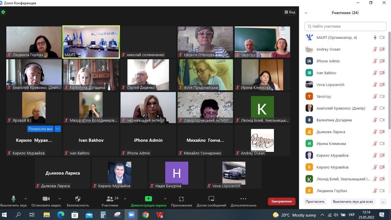 25 травня 2022 року об 12.00 відбулося засідання Вченої ради Міжрегіональної Академії управління персоналом.