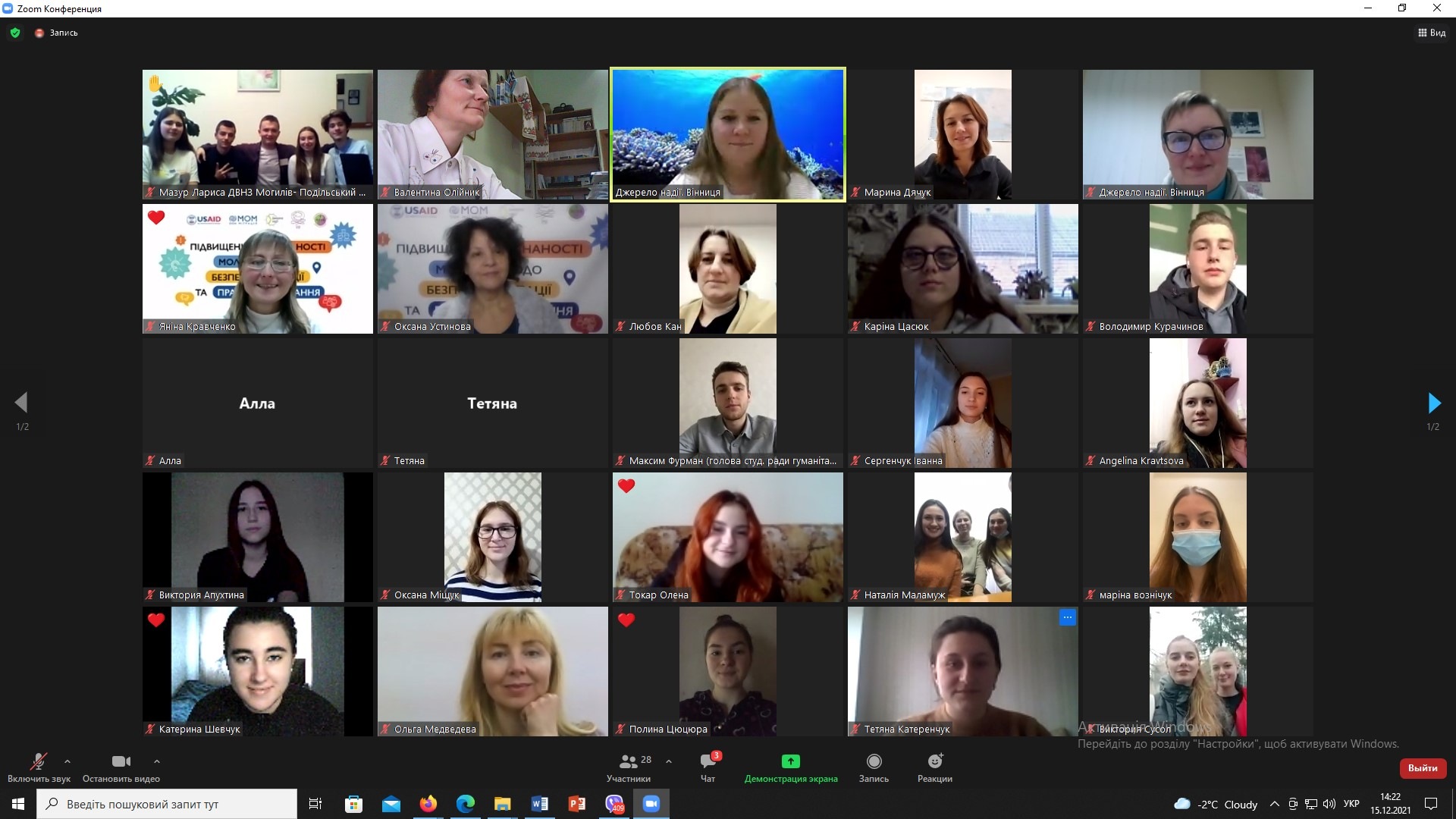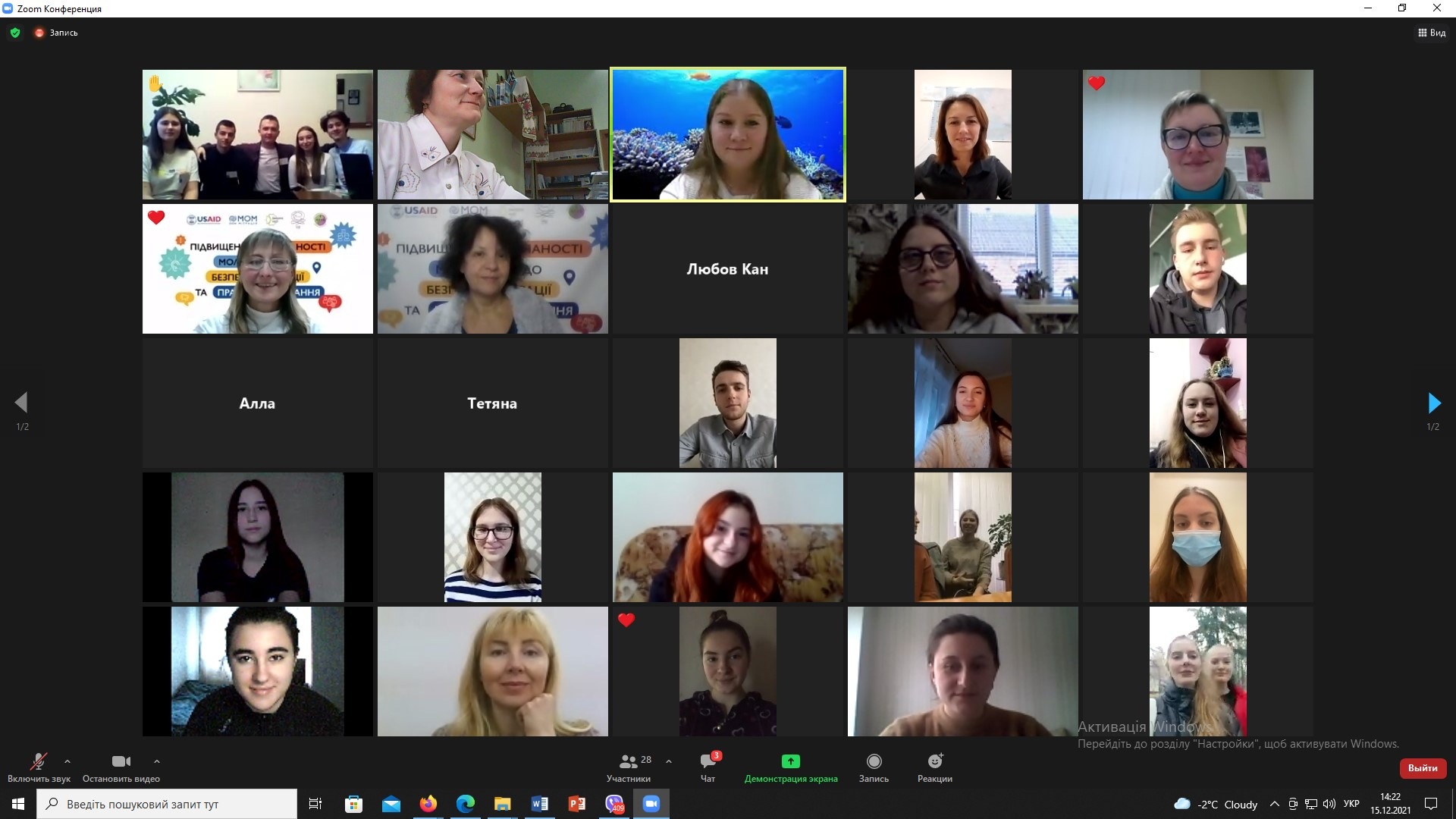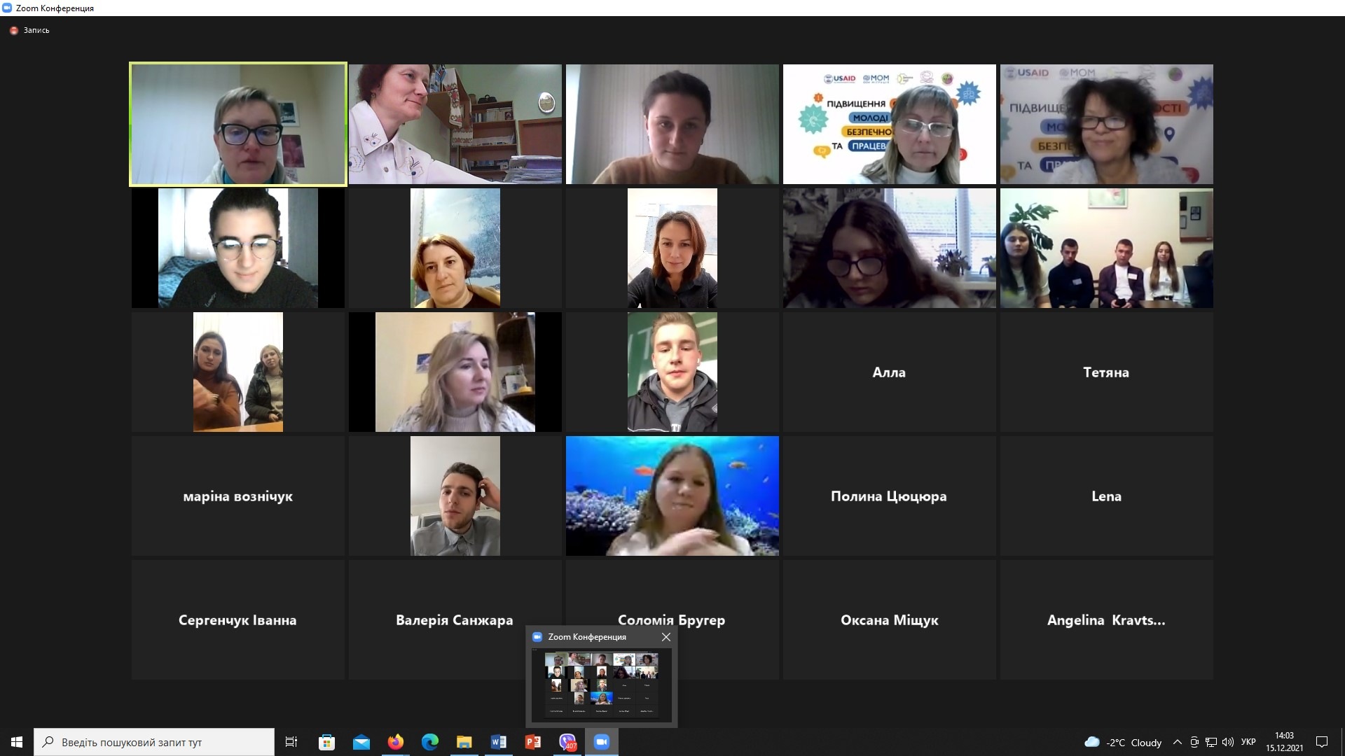 15 грудня 2021 року здобувачі-психологи Марина Вознічук (2 курс), Володимир Курачинов (3 курс) та викладачі кафедри психології взяли участь у фінальній онлайн-зустрічі представництва МОМ в Україні з протидії торгівлі людьми.