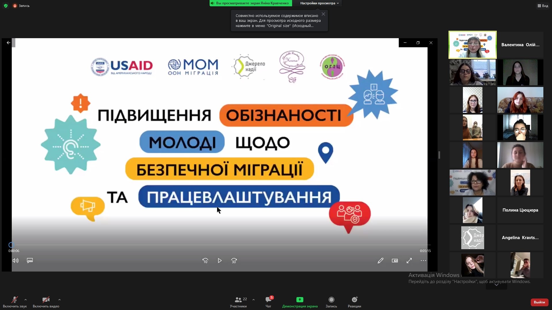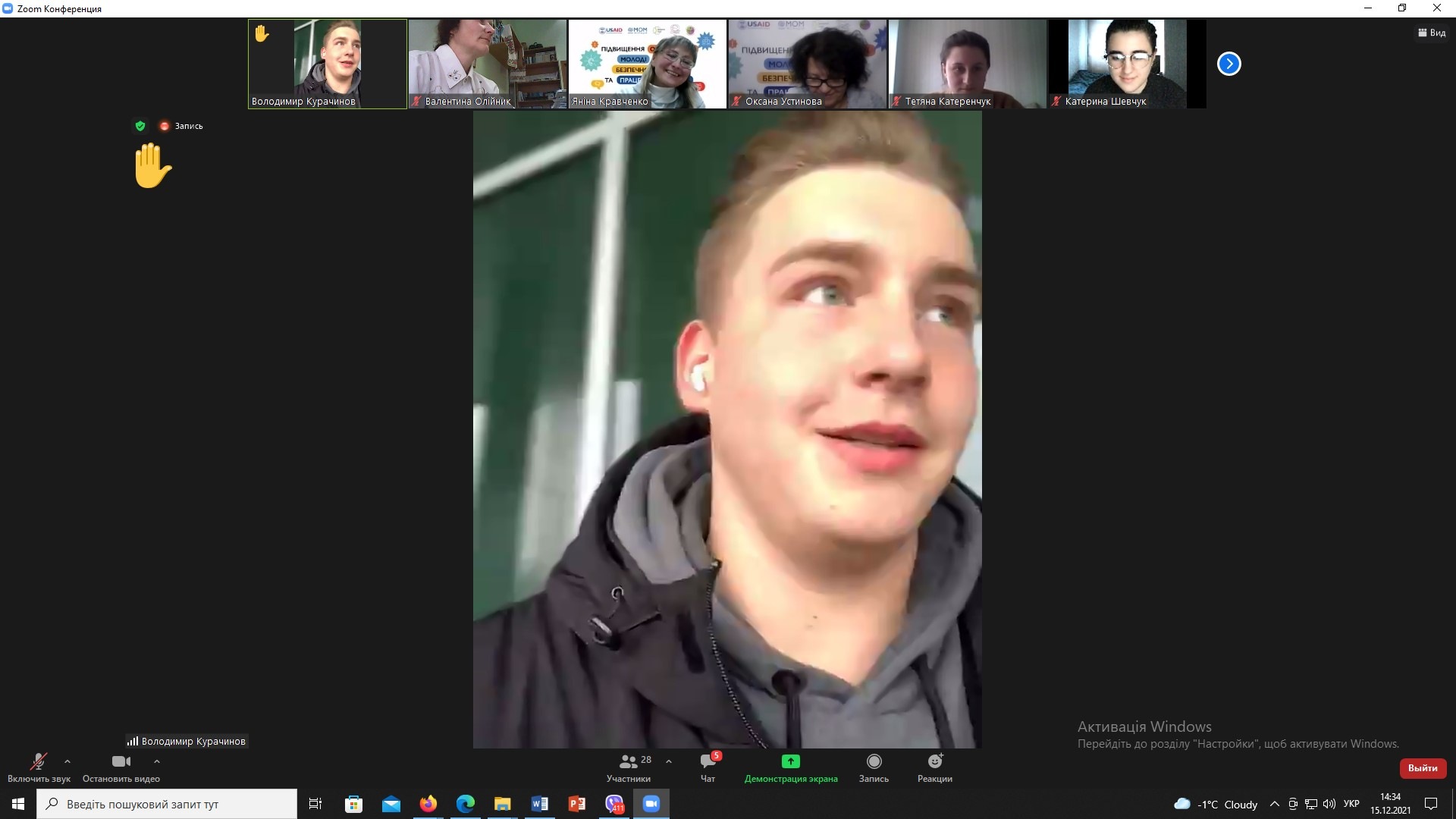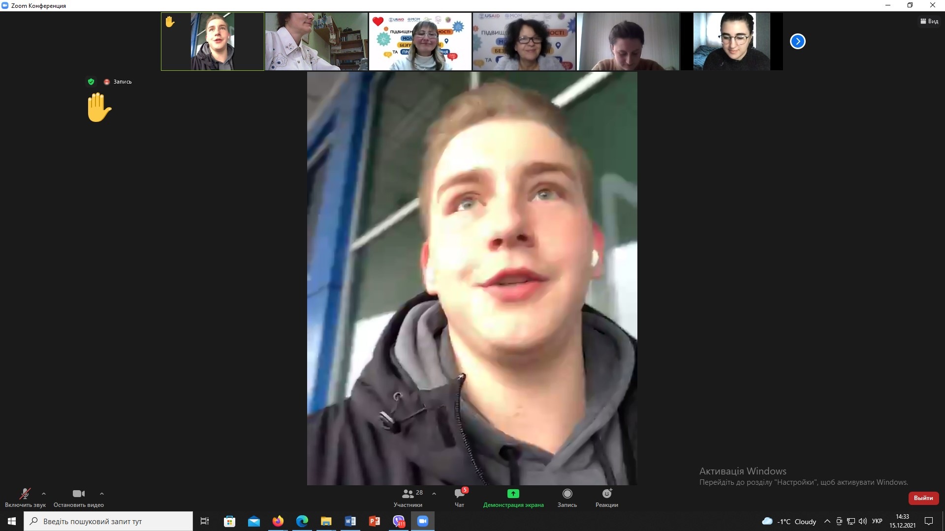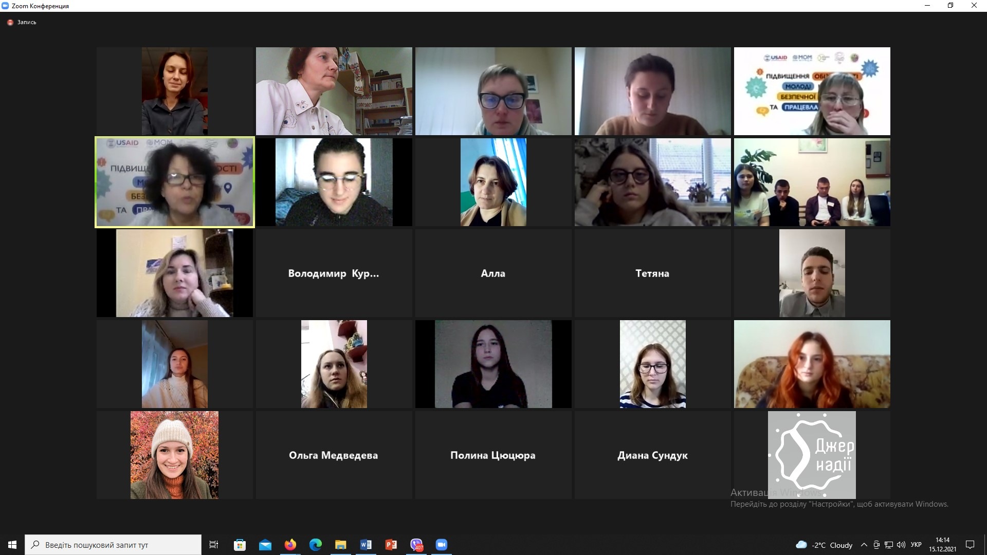 15 грудня 2021 року здобувачі-психологи Марина Вознічук (2 курс), Володимир Курачинов (3 курс) та викладачі кафедри психології взяли участь у фінальній онлайн-зустрічі представництва МОМ в Україні з протидії торгівлі людьми.