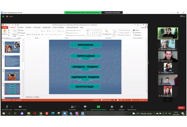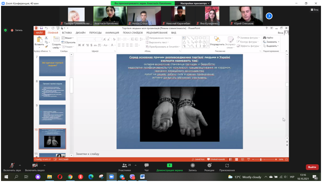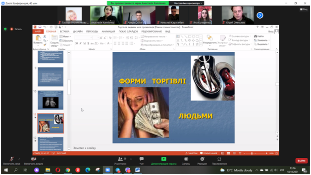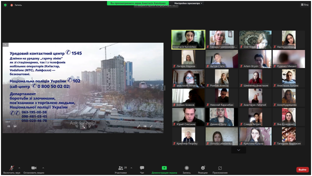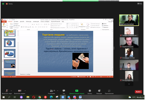 18 жовтня 2021 р. в Європейський день боротьби торгівлею людьми в онлайн-режимі фахівцем Центру безоплатної правової допомоги м. Ізмаїл Каплієнко Анастасією був проведений онлайн-тренінг для здобувачів освіти Придунайської філії ПрАТ «ВНЗ «МАУП».