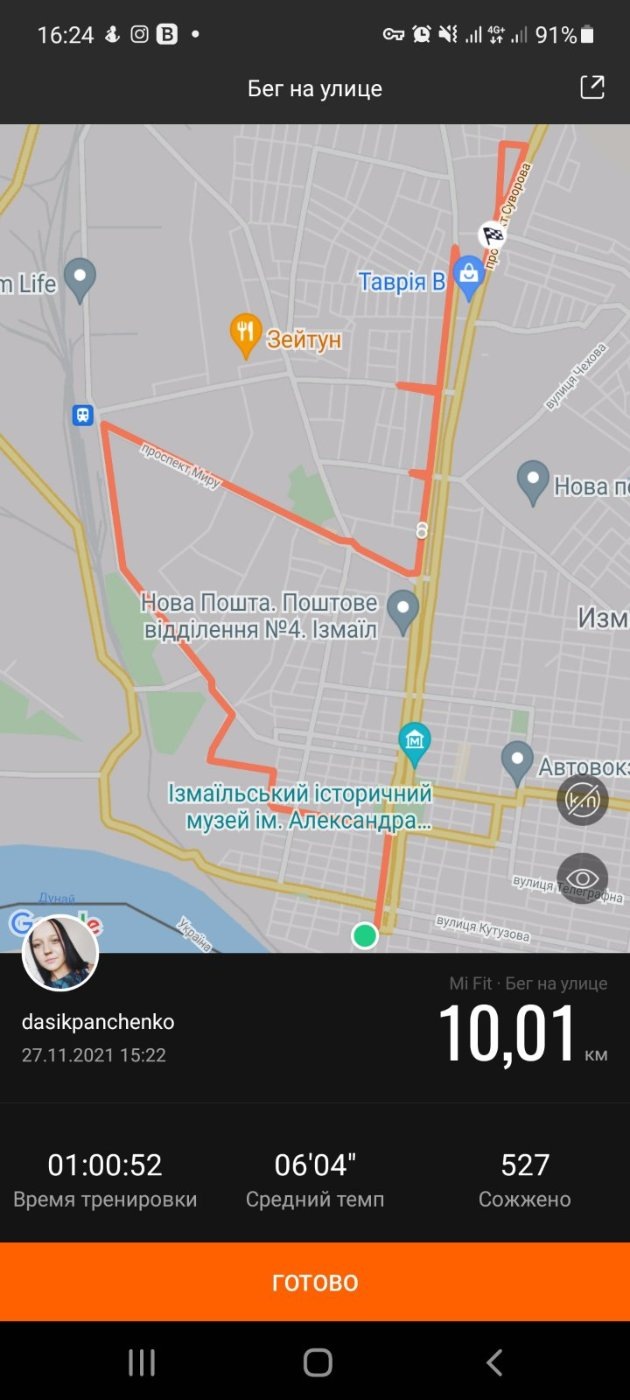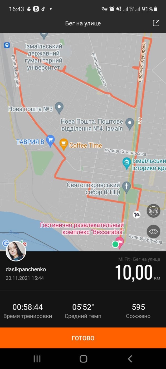 Дар'я Панченко, здобувачка вищої освіти ІІІ курсу денного відділення Придунайської філії ПрАТ "ВНЗ "МАУП" стала переможцем двох марафонів на 10 км., присвячених Дню Гідності та Свободи, посівши друге місце в обох змаганнях, що проходили у період з 20.11. 2021 по 01.12.2021.