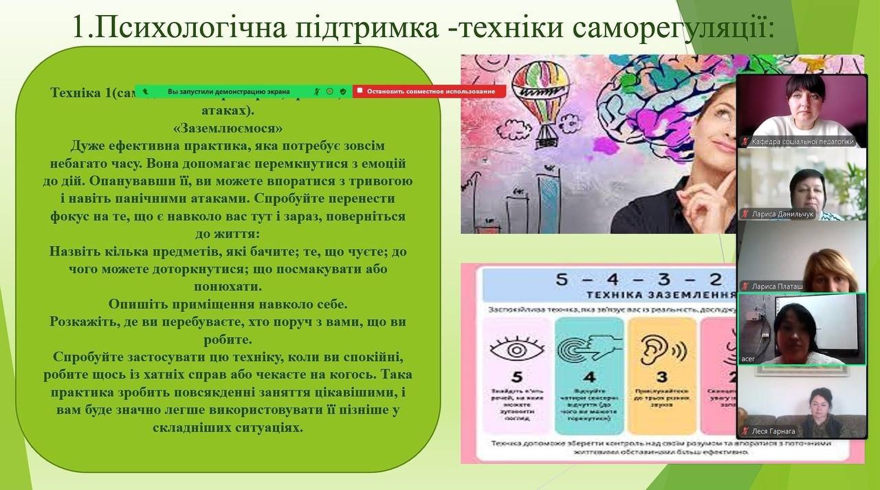 - Баланс і гармонія як основи життєвого простору для психологів. Було підкреслено, що для ефективної допомоги іншим фахівці повинні дбати про власний психологічний комфорт і здоровий баланс між роботою та особистим життям.