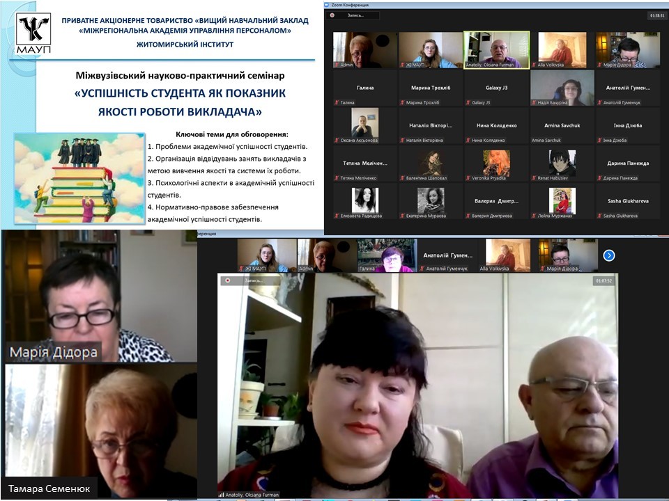 Житомирський інститут МАУП провів міжвузівський науково-практичний онлайн-семінар «Успішність студента як показник якості роботи викладача»