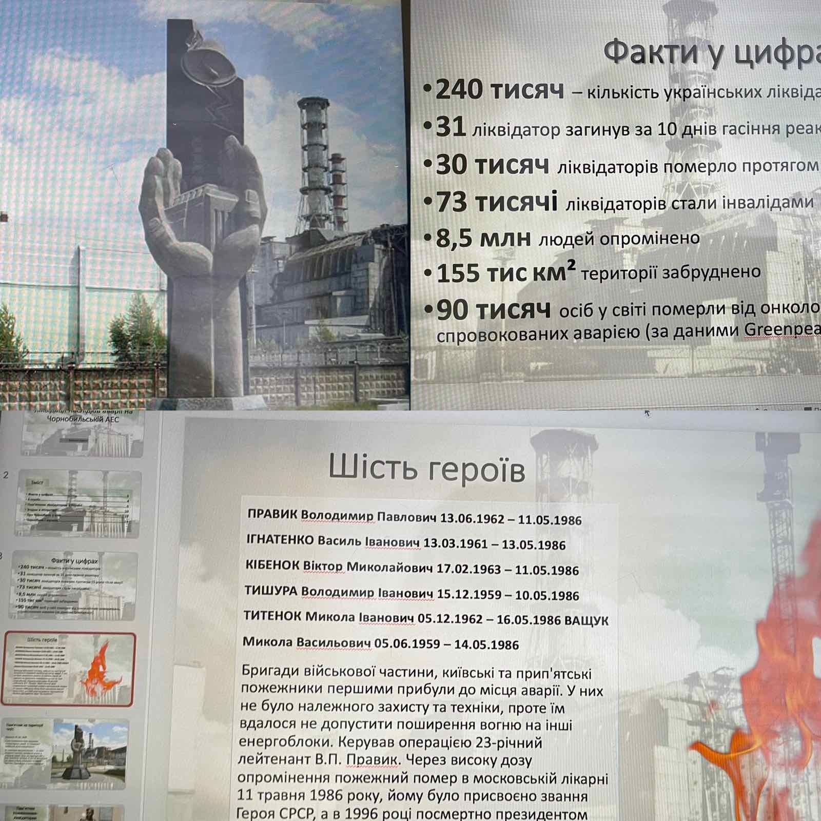 26.04.1986 р. над нашим славним Поліссям здійнявся в нічному небі зловісний вогонь радіаційного вибуху, який розповсюдився на тисячі кілометрів. Це найбільша екологічна катастрофа ХХ ст., наслідки якої торкнулися доль мільйонів людей. Ліквідатори найбільше постраждали від цієї катастрофи.