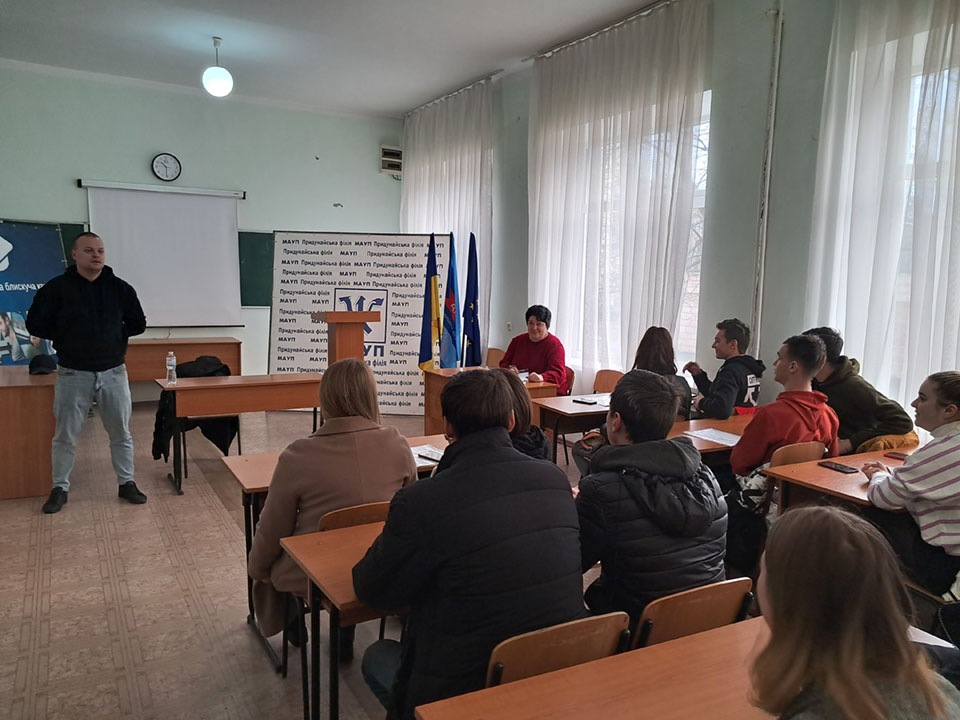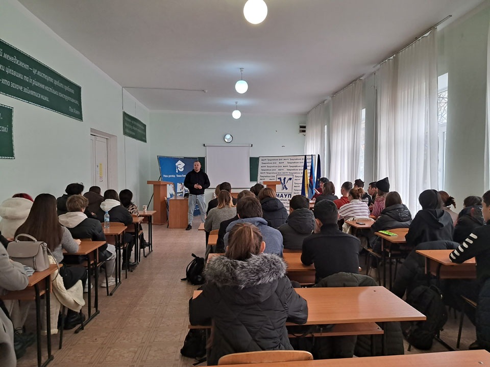 В продовження святкування кафедрою права Придунайської філії ПрАТ "ВНЗ "МАУП" Тижня права 07. 12. 2022 р. для здобувачів вищої освіти спеціальності "Право" науково-педагогічними працівниками кафедри була організована зустріч з представником поліції Синяєвим Богданом Олександровичем.