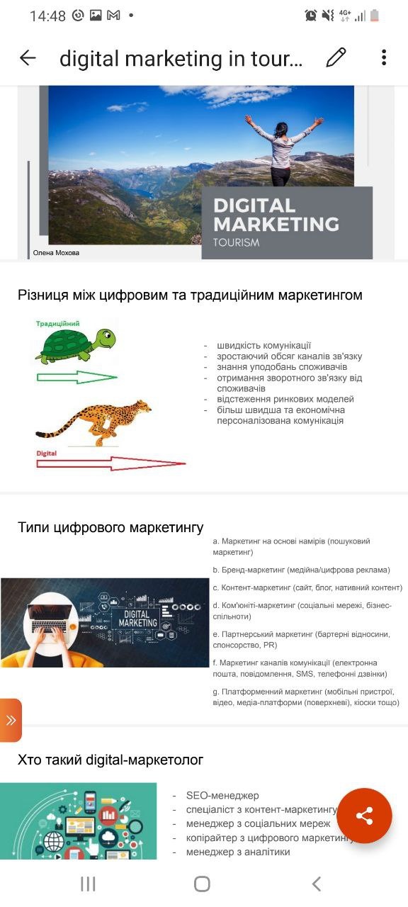 Олена Мохова розповіла студентам про сучасні технології та інструменти digital-маркетингу в туристичній індустрії, зокрема про SEO оптимізацію, SMM-маркетинг, контекстну рекламу, ретаргетинг, воронку продажів. Особливу увагу було звернено на партнерський маркетинг, який вперше ефективно зарекомендував себе саме в галузі туризму.
