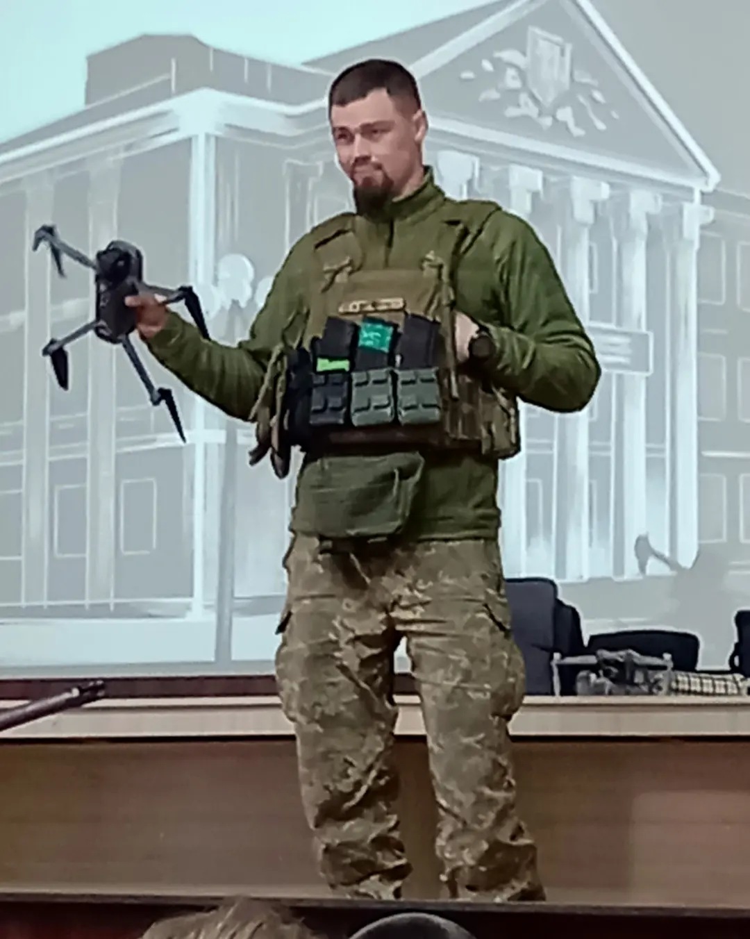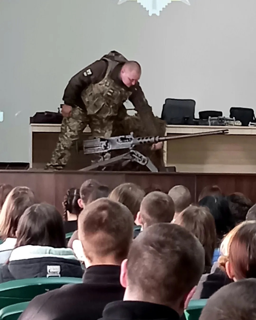 Військовослужбовці не лише розповіли студентам про реалії сучасної війни, а й продемонстрували можливості військового спорядження, амуніції, розповіли про особливості роботи дронів, снайперської справи, мінної безпеки та продемонстрували власні розробки з переоснащення технічних засобів.